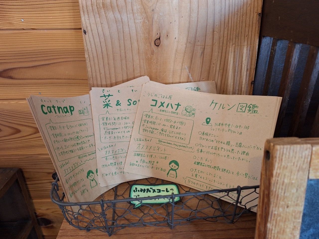 シェアキッチン「ケルン」の出店者3組にインタビューをおこない、手書きのフリーペーパーを作成。